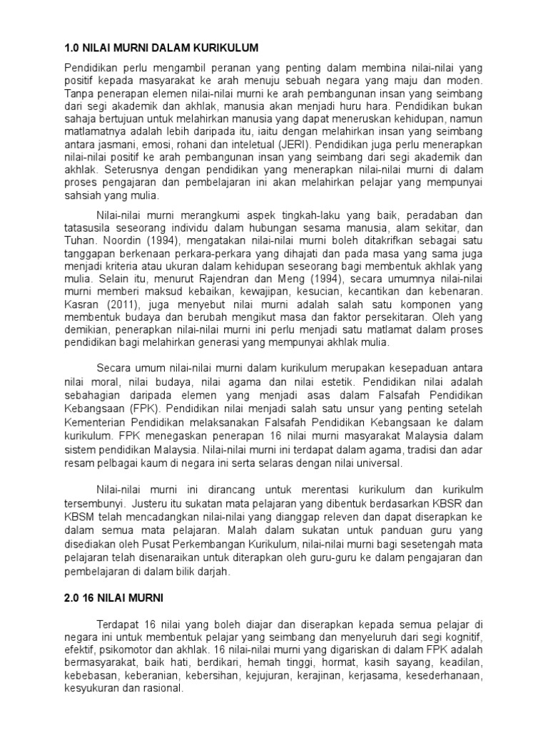 Misalnya, jurusan biologi dan pendidikan biologi. The four 'nilai murni' above are grouped under the 'hak asasi' (human rights) section of the syllabus. Apakah terbatas pada pendidikan islam dalam pengertian agama secara murni, atau pendidikan islam dalam pertama pendidikan islam__ sebagai sumber nilai__adalah jenis pendidikan yang pendirian dan 16ibid., 61. Nilai murni pendidikan moral bidang pembelajaran 1 : Pendidikan karakter adalah pendidikan nilai, pendidikan budi pekerti, pendidikan moral.