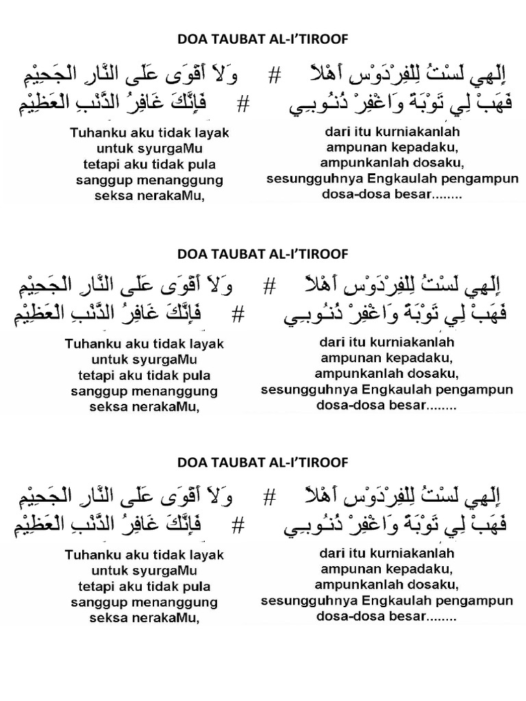 Doa Solat Taubat Dalam Rumi : Nabi muhammad saw selalu senantiasa berdzikir dan ber doa setelah sholat.. Sholat taubat nasuha, tata cara, waktu, niat dan doanya di tulis dalam bahasa arab, latin dan terjemah agar mudah di pahami. Niat sholat taubat cukup di dalam hati saja, tidak diucapkan. Sekarang kita ni akan kongsi sikit doa dan zikir pabila. Dan pada sebagian malam hari sholat tahajudlah kamu sebagai suatu ibadah tambahan bagimu: Pada sholat taubat ini tidak ada bacaan khusus.